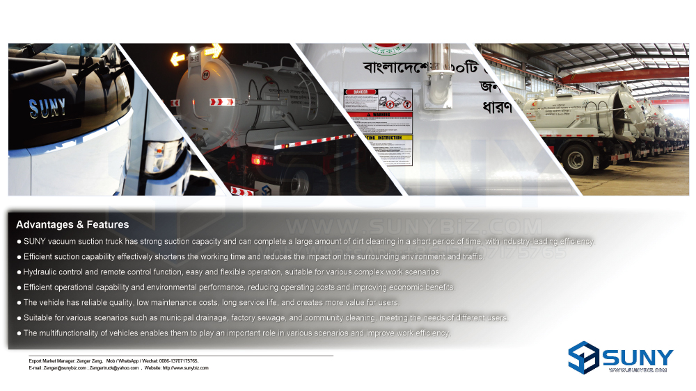 Vacuum sewage suction truck is designed special purposed truck which used to collect, transport and discharge liquid such as dirty water, sludge, septic, crude oil, and solid stuff such as small stones, bricks as well.