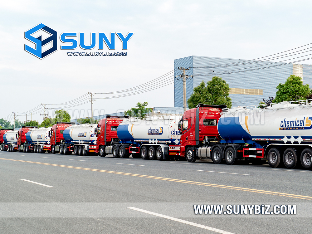 Chemical tanker semi trailer is used to transport chemical liquid, such as hydrochloric acid, sulfuric acid, acetic acid, nitric acid, toluene, alcohol, hydrogen peroxide, etc.